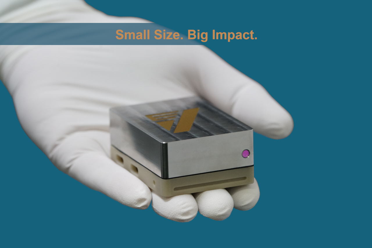 HUMMINGBIRDは、幅49mm × 奥行70mm × 高さ28 mm、重量300グラム未満という驚異的な小型・軽量設計でありながら、平均出力1W以上、150fs(典型値)の超短パルス、50MHzの高繰返しを叶えるフェムト秒パルスレーザーです。