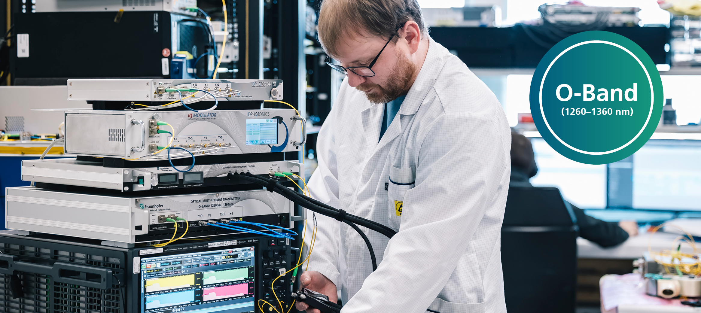 Fraunhofer HHI provides high-speed O-band test and measurement solutions beyond C/L-band systems, including DP IQ transmitters, coherent receiver frontends, and optical loop control. With ID Photonics, we offer reference transmitters up to 80 GHz and coherent receivers up to 60 GHz.